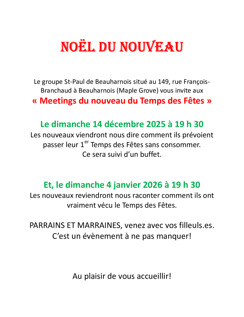 Noël du Nouveau à Beauharnois (Maple Grove)