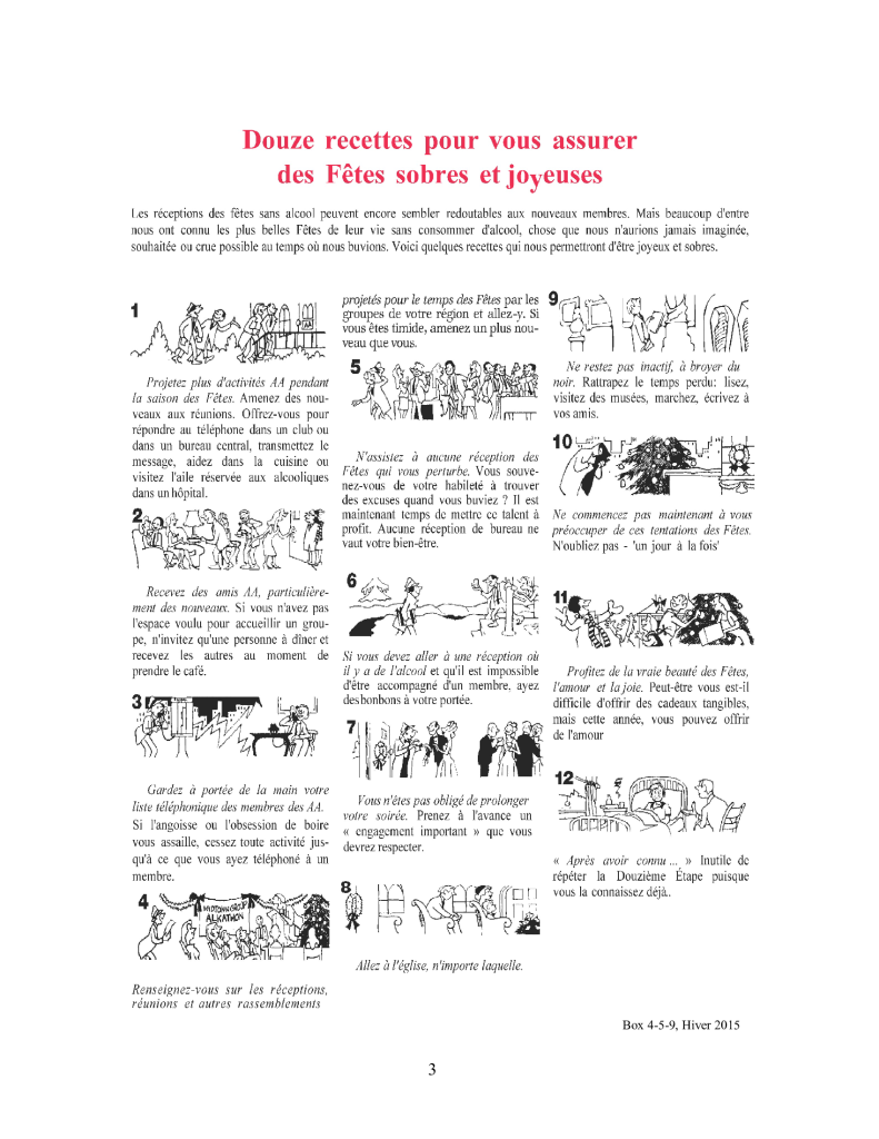 N'oubliez pas d'afficher sur le babillard de votre groupe les Douze Conseils pour des Fêtes heureuses et abstinentes.